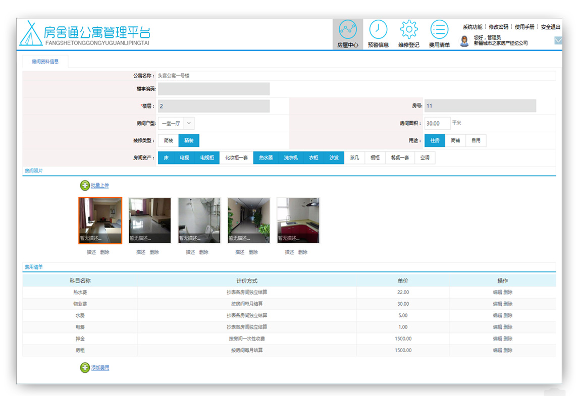 預定,入住,抄表,續(xù)費,退房,維修,