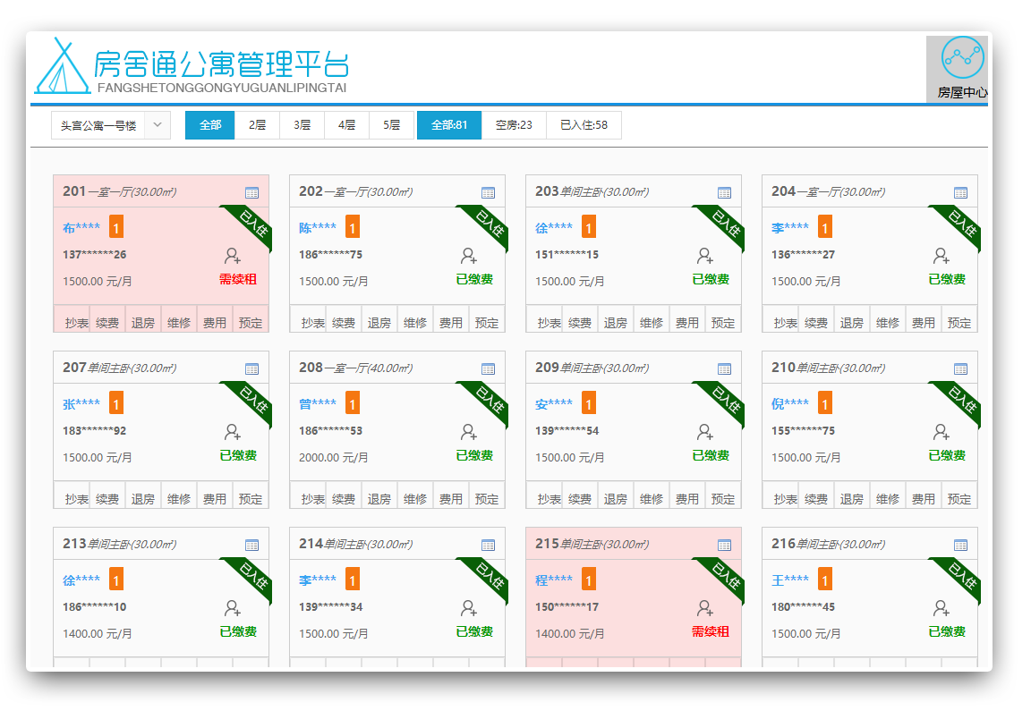 房屋出租狀態(tài),繳費預警,租客信息一目了然,